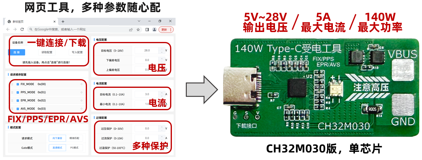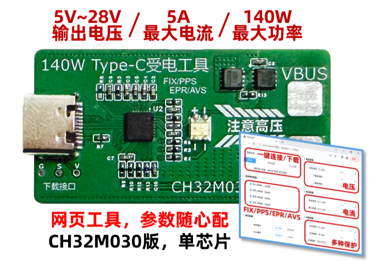 用网页设置电压电流,Type-C受电工具新玩法!基于CH32M030,最高140W,支持FIX/PPS/EPR/AVS。