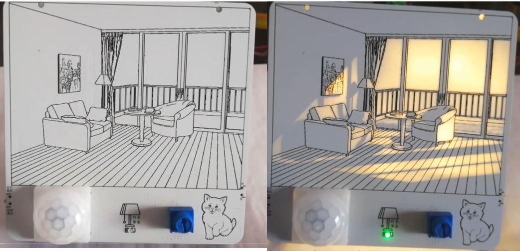 电路整体结构与之前的中秋灯光画基本相同,画面板与灯光板分离,两张板水平翻转拼接。