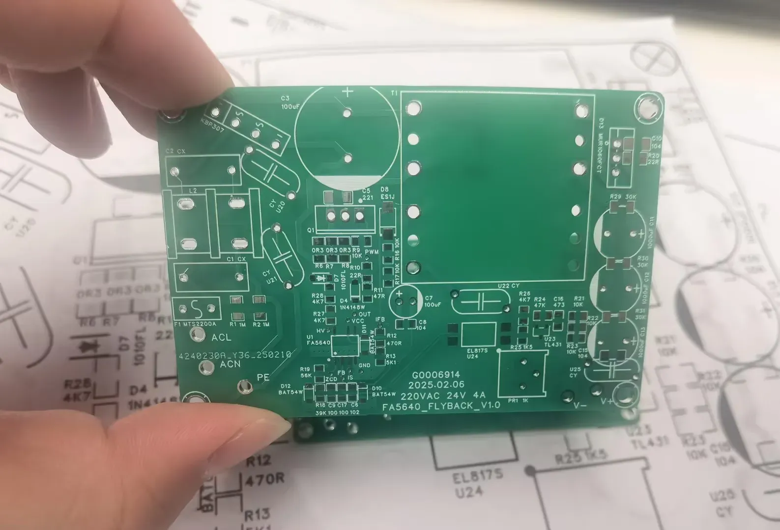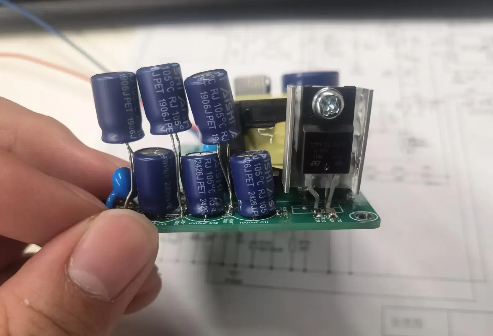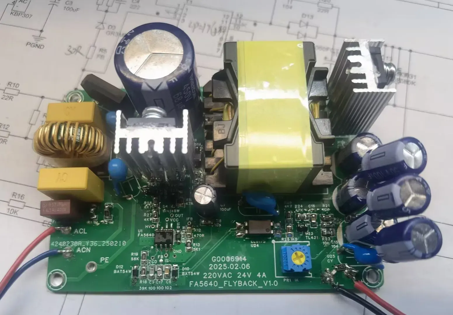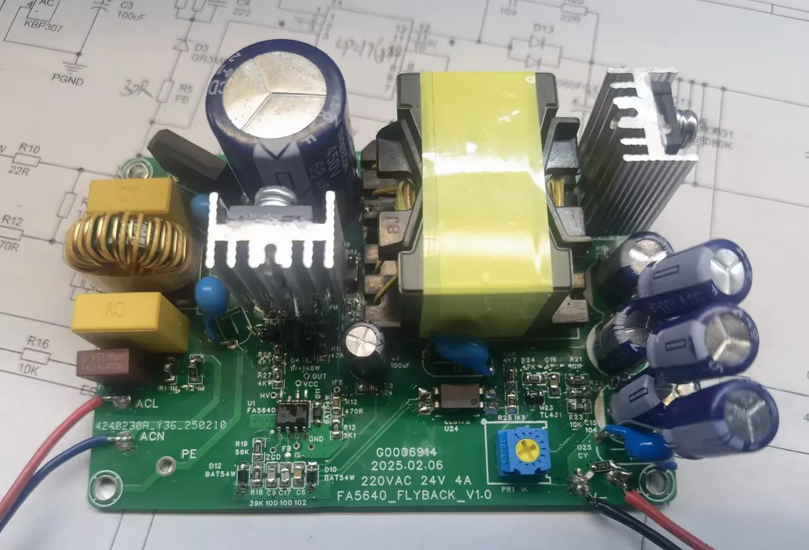 该电源中除了PCB板是新打样的,其他插件物料都是从公司废料盒里翻出来的,主打一个能用就行。