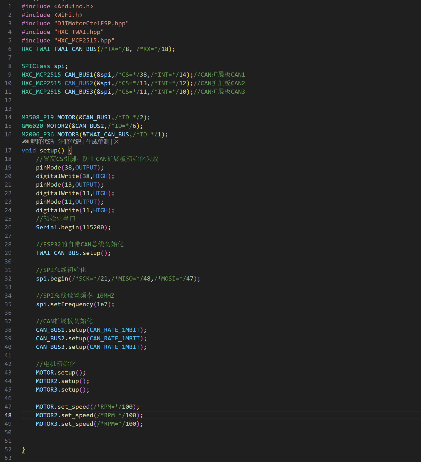 兼容大疆电机驱动库可以方便的和自带的CAN总线混合控制电机