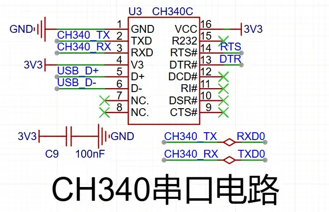 通过TYPE-C接口与CH340串口芯片与模组进行通信和下载程序,由于ESP32芯片具有不同的启动模式,通过使用两个三极管来实现自动下载的功能,无需手动切换电平来进入