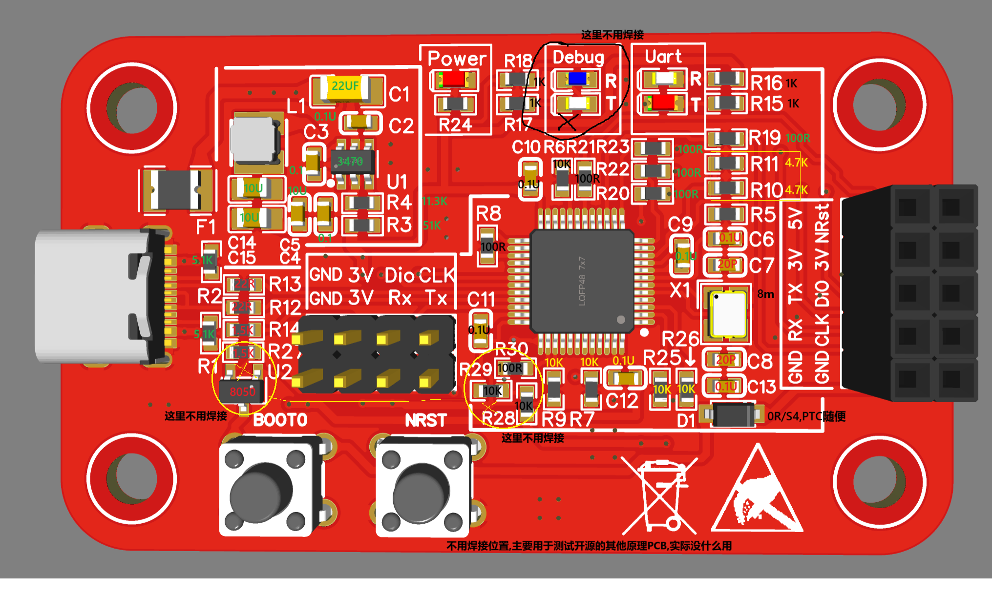 LED4.LED5实际测试没什么用,不用焊接,原第一版LED45没连接,改了下PCB.实际还是没什么用,第一版测试DAP(103c8),STLINK2.1(103cb),JLINKOB(103c8)没问题,好用,^_^