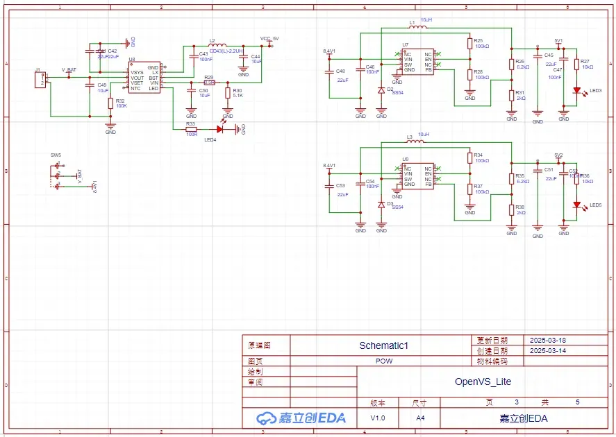 2S电池供电,提供两路5V3A电源输出,分别给屏幕和核心板供电。