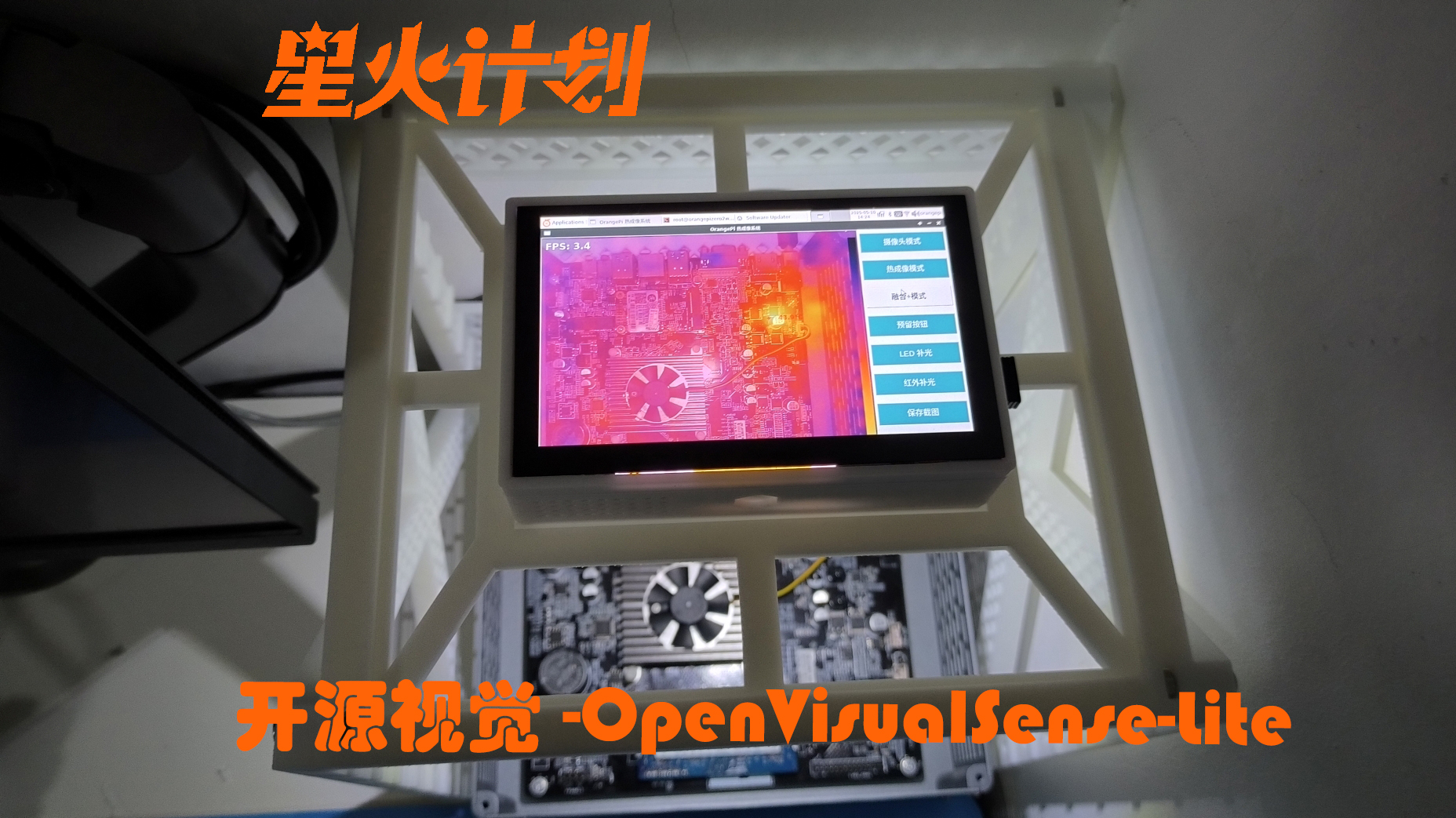 开源视觉-OpenVisualSense-Lite项目基于嵌入式单板机(orangepi)设计,Lite版本配置一个500像素USB摄像头、一个热成像传感器,通过视觉融合算法实现视觉感知。