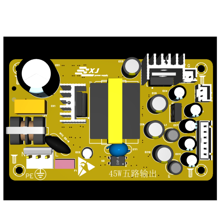 这是常见的裸板式开关电源,目前客户用在净水器设备上面,量产过多次性能稳定一致性好,对反激式开关电源有兴趣的朋友可以参考以下,如有不足之处,欢迎批评指正,要交流的可以加我VX:abcraydon