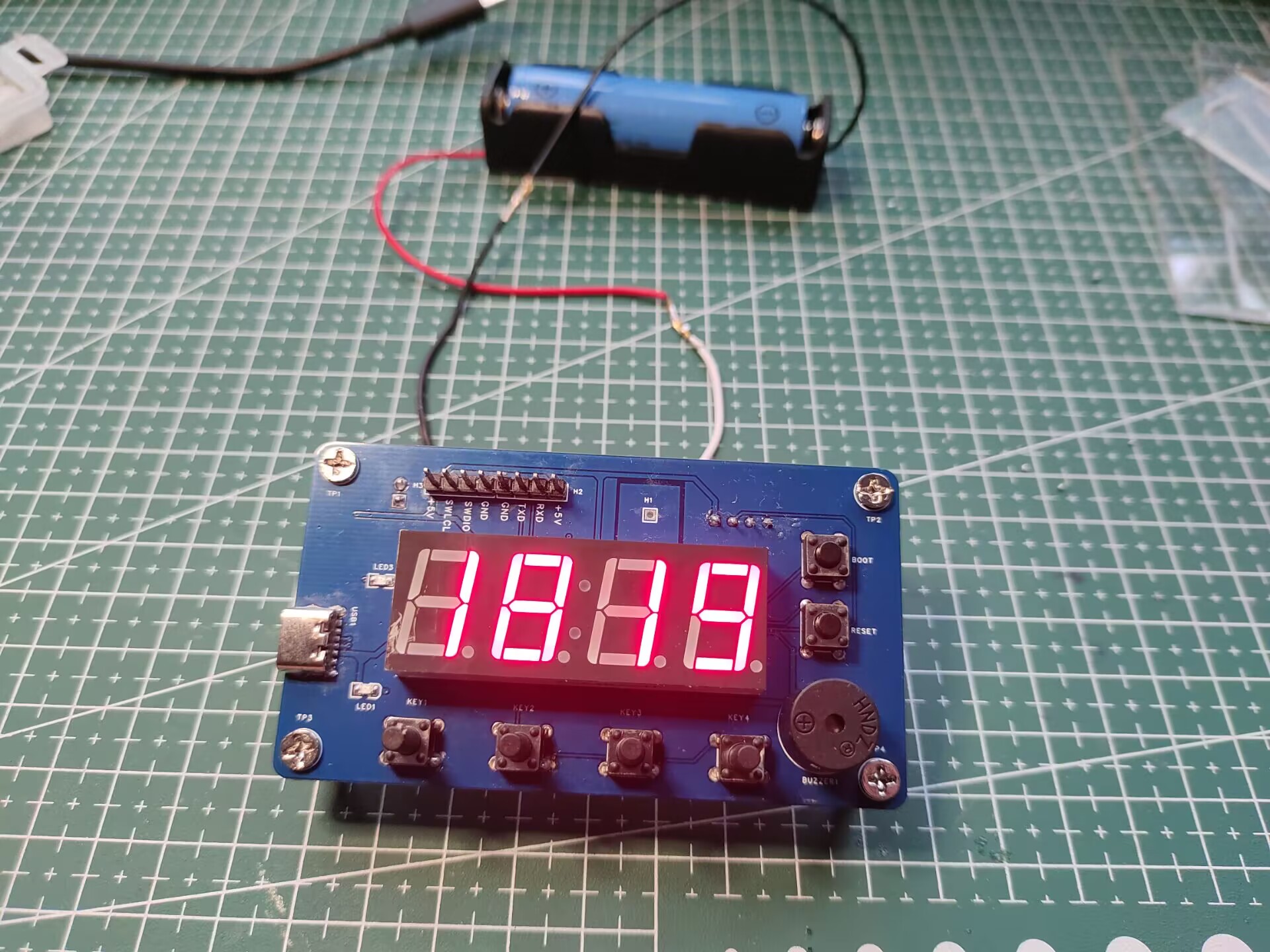 - 数码管有三种显示模式:时间显示、温度显示以及湿度显示。