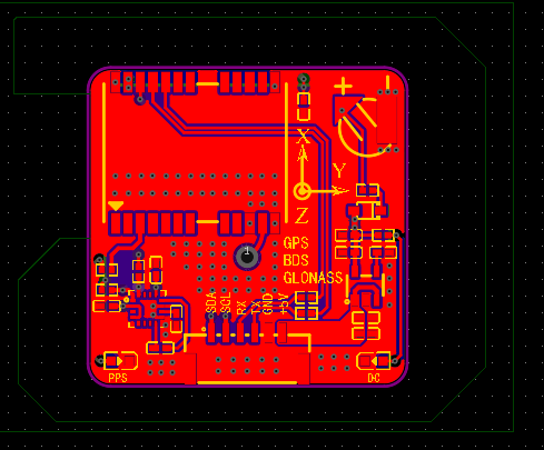 第一层为5883L的IIC信号线和其他走线,第一层铜箔天线馈线下方已经挖空处理。!!!注意:这里的内一层天线馈线下方挖空已修改,详细见pcb。(这里的IIC走线属于低速信号线其实不用等长,但是这做了等长并不影响),因为我有点强迫症