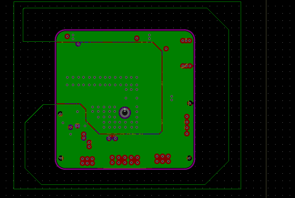 第二层为3.3V电源铺铜和作为天线参考面的GND铺铜