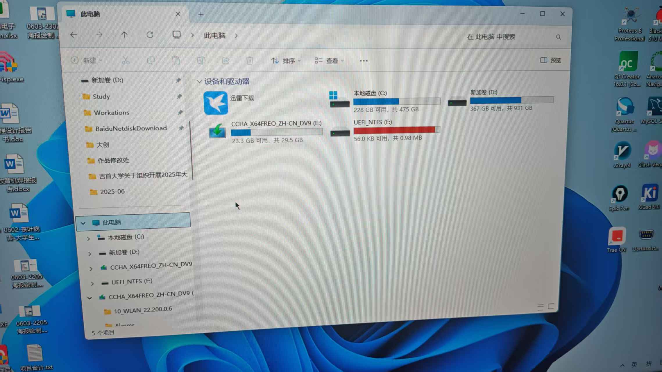 如图所示,插入一根typec的线,然后接入U盘,电脑上能识别出来U盘,但是由于设计较为简单,可能跑不满U盘速度,设计时按照usb2.0设计,最好使用键盘鼠标等设备