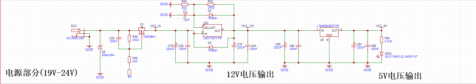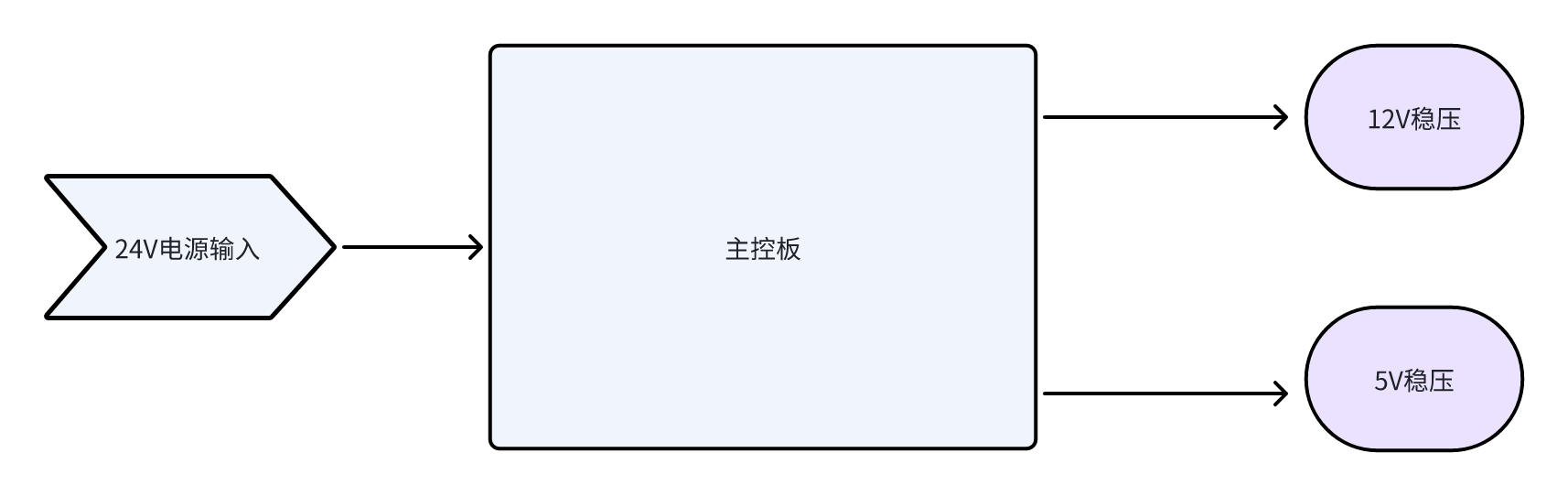 (2)采用常用的24V电源输入,那主控板必须具备降压和稳压的功能,具体电源框架图如下: