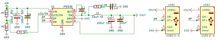8~32V输入,车充放电芯片,5V 3.1A A口输出(最大输出总电流3.1A)