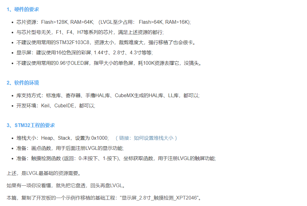 首先需要提供开发板来正常驱动一个TFT屏幕点亮以及触摸功能正常,此时按照该博客博主介绍进行操作则可以正常移植成功8.3LVGL,本人亲自移植正常