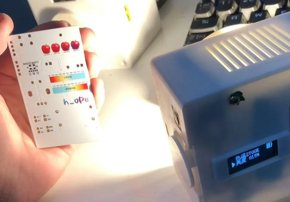 这是一款基于STM32F103C8T6的大功率双色温高显色的摄影补光灯,显色指数和功率由COB参数决定。最大支持200W。此项目里为显指Ra≥95。