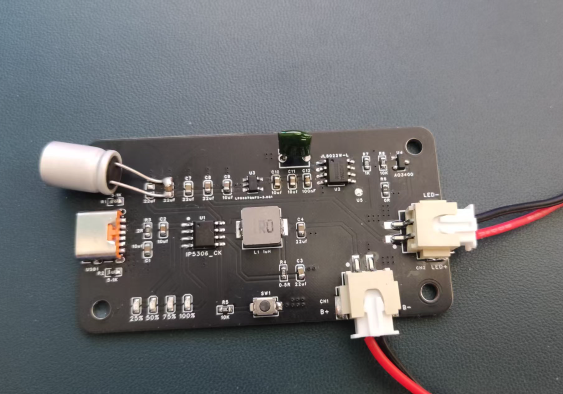 基于IP5306_CK电源管理芯片和JL-8022W-L触摸芯片的触摸调光模块,改进了上一版本的电感啸叫以及拔插Type-C时LED断电的问题。