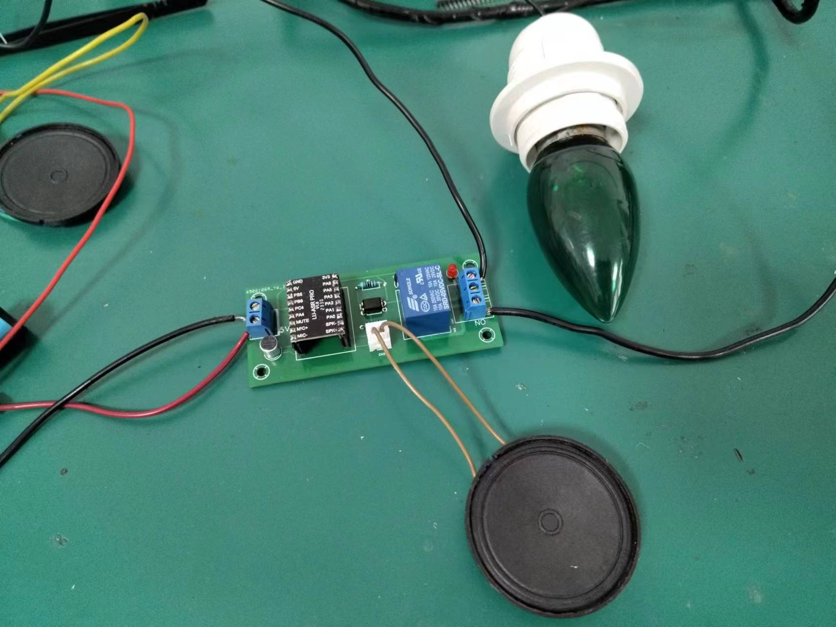用离线语音IC制作的声控灯。语音芯片可以自己编程。