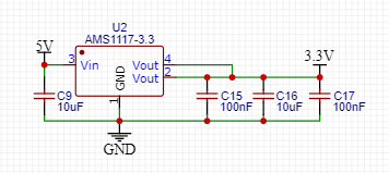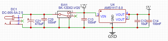 首先为了电机驱动我接入了12V电压,给芯片和模组供电用的3.3V(先降到5V再用1117到3.3V)