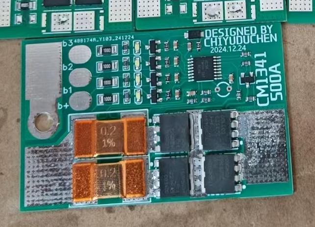 焊接两个0.2mr采样电阻的情况下支持500A放电,200A充电。支持均衡功能,均衡指示灯功能。