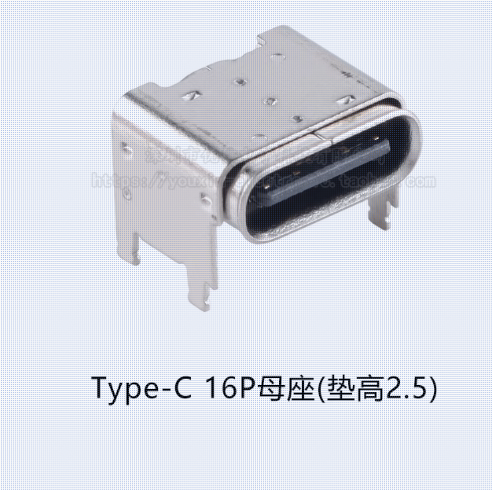 USB Type-C 16P母座卧贴垫高1.0/2.5/4.3板上四脚插座USB连接器