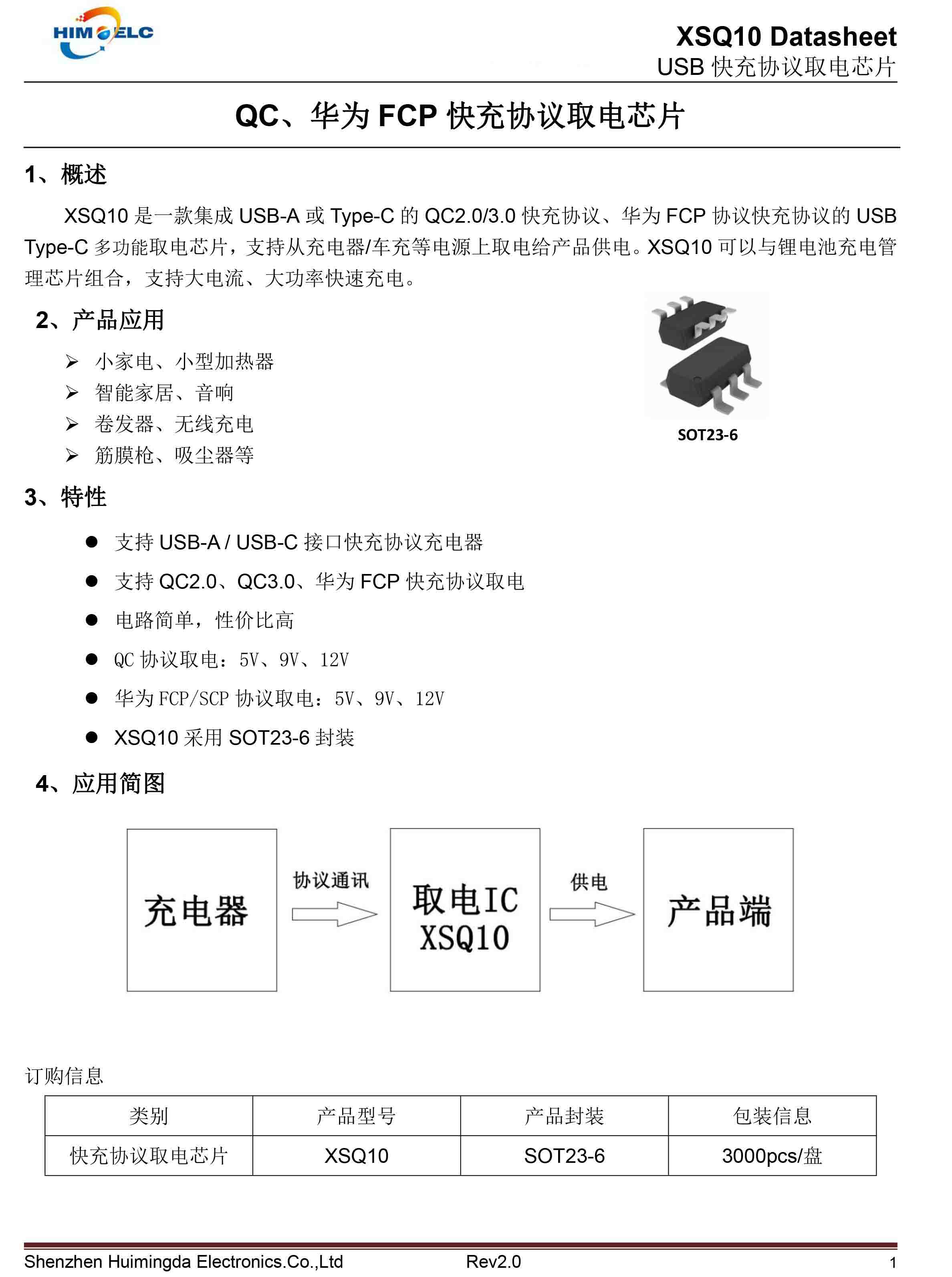 XSQ10快充协议诱骗方案,支持5V,9V,12V在线动态切换