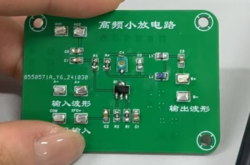 的测量方法是:在谐振回路已处于谐振状态时,用高频电压表测量图1-1中输出信号及输入信号 的大小,则电压放大倍数 由下式计算: