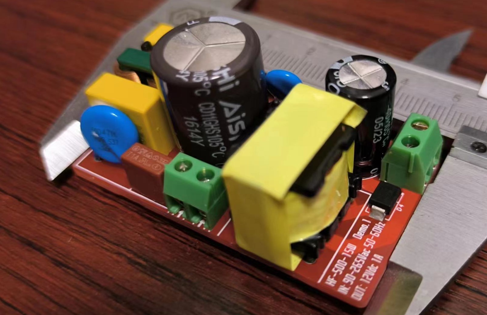 12V 1A,平均效率约79%。使用HF500-15芯片,12V 1A,EE19变压器。第一次做AC-DC反激电源,大多数元件参考datasheet,layout没有留有足够的安全间隙。