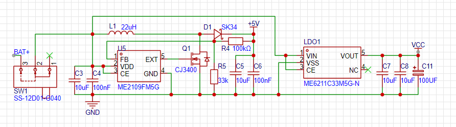 本项目元件选用原则:在保证功能正常的情况下,尽量选择型号相同的元件,以减少单个项目的成本(例如:22uH电感、MMBT3904三极管、CJ3400场管等)