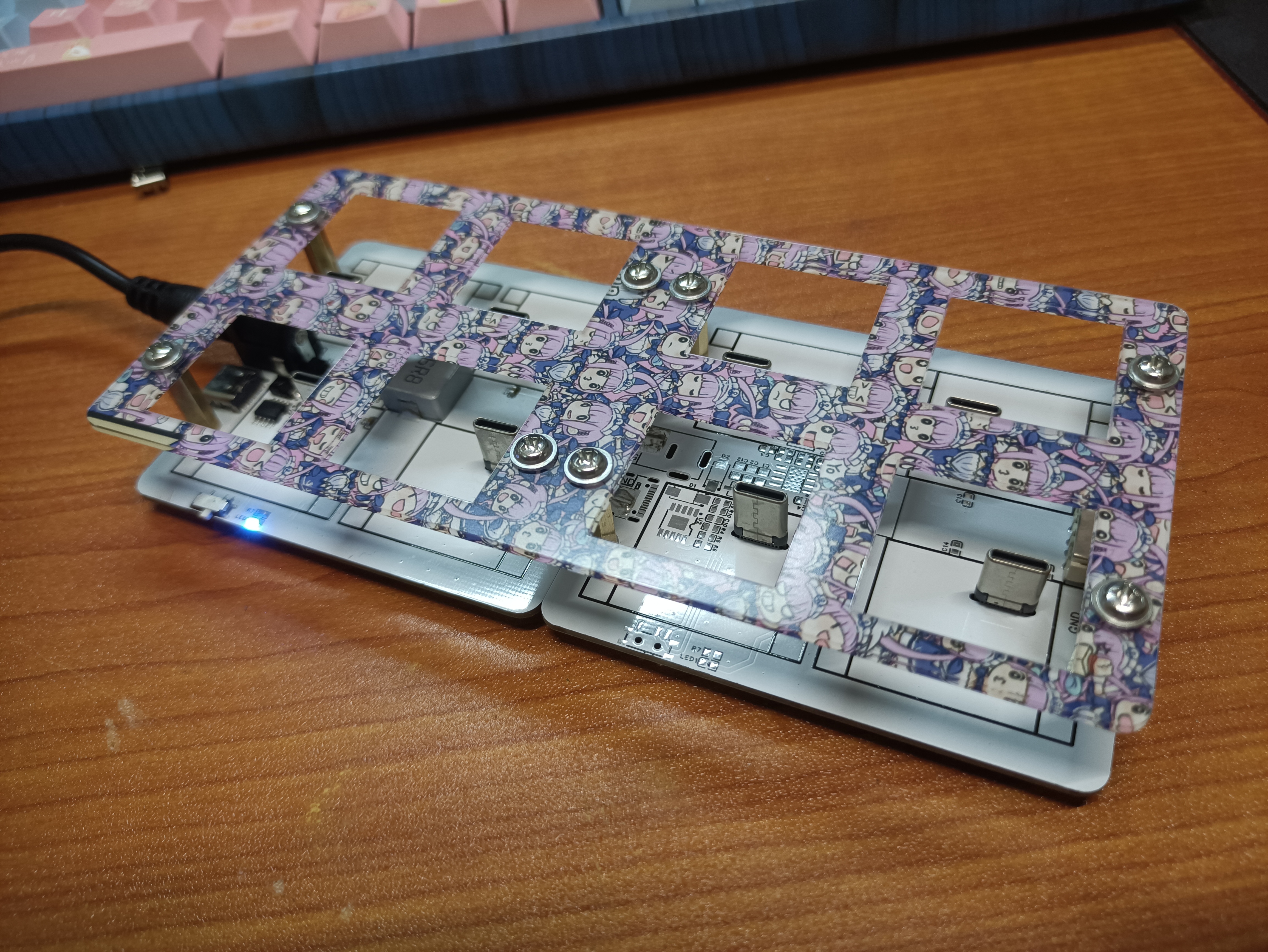 1、使用两块相同的板拼接而成(为了符合白嫖规则),仅第一块板需要焊接电路,板与板之间放个例如1.5平铜线焊接连接。第二块版只需要焊接TypeC公头和USB母座。