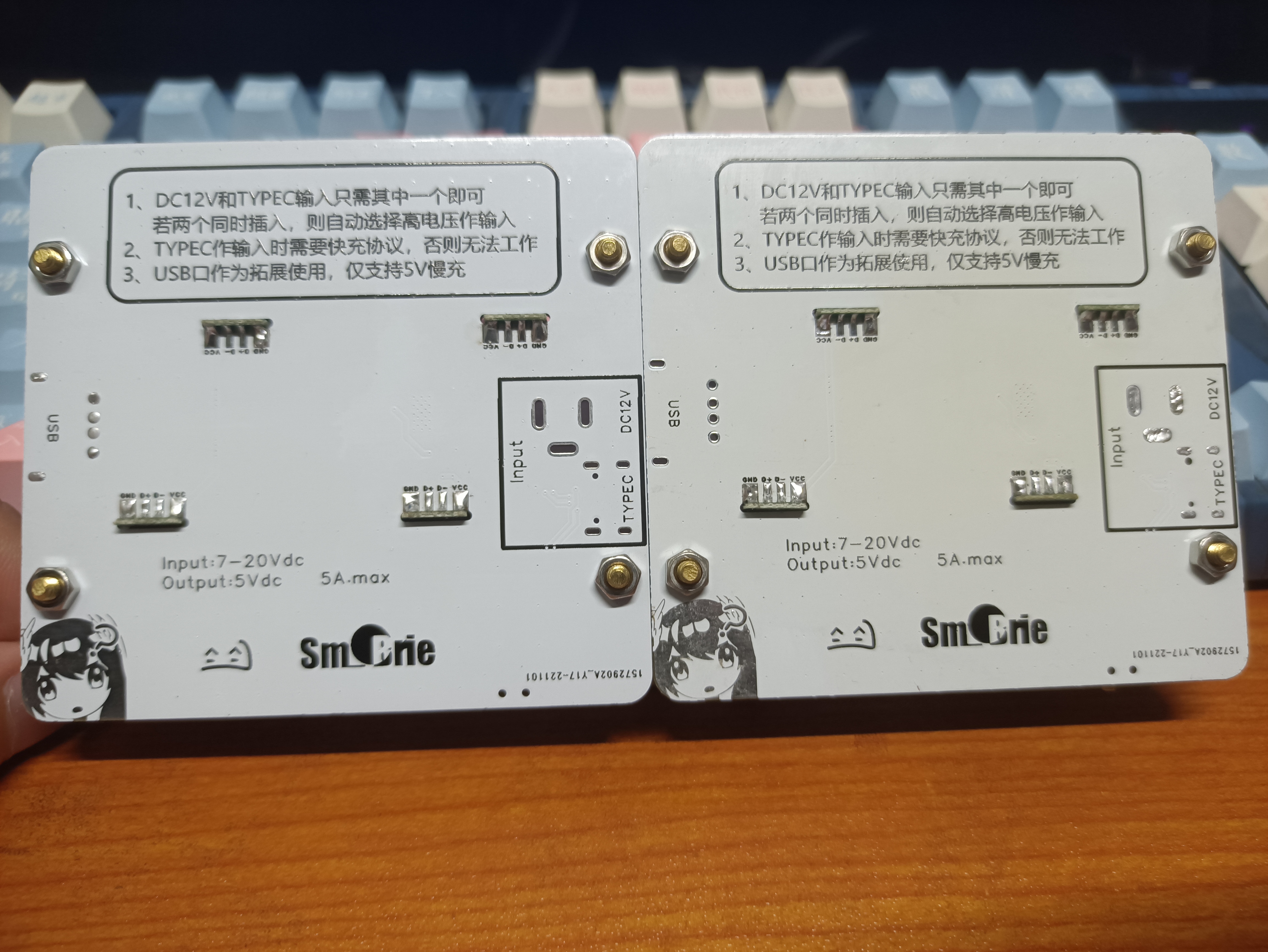 4、支持TypeC快充或者DC12V输入,二选一即可,一起插会从高电压的取电。USB母座只支持5V慢充。