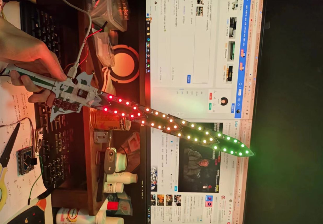 刀剑神域第一季kilito之剑,主控为MM32SPIN05PF,外部模块包括MPU6050、触摸按键与三个实体大按键,灯珠是经典2812。
