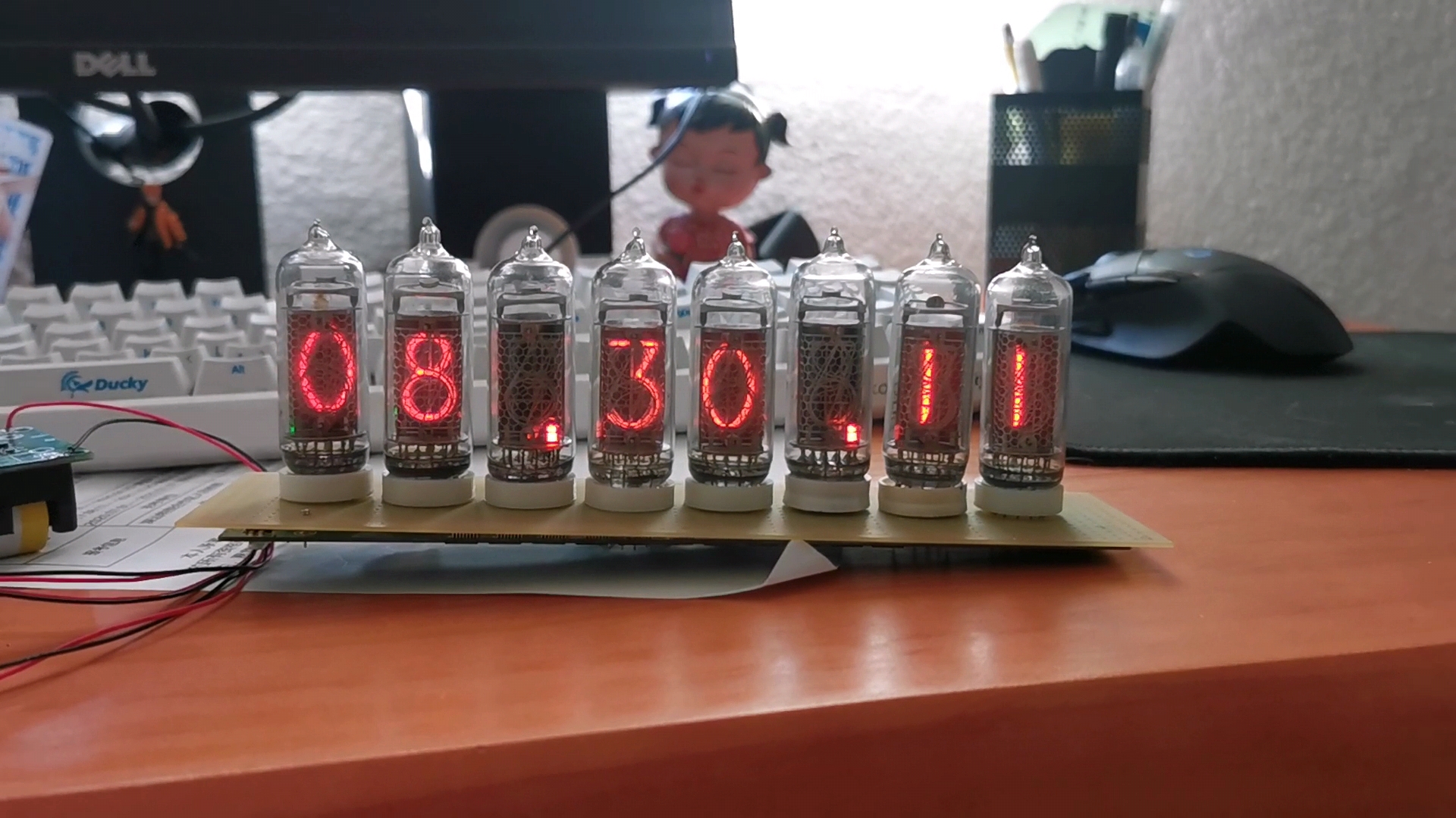 参照bilibili用户 @遗落之沙 在STC15F2K60S2单片机设计的QS1812辉光管“世界线变动仪”原理图的基础上,修改适合于IN-14辉光管,基础功能已完成验证。