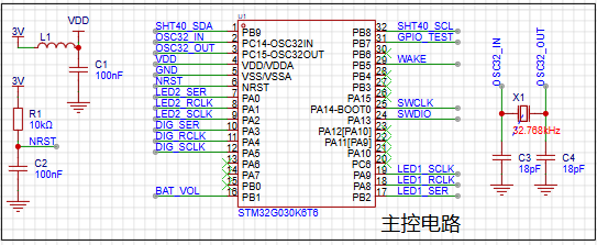 采用STM32G030K6T6,晶振采用32.768kHz