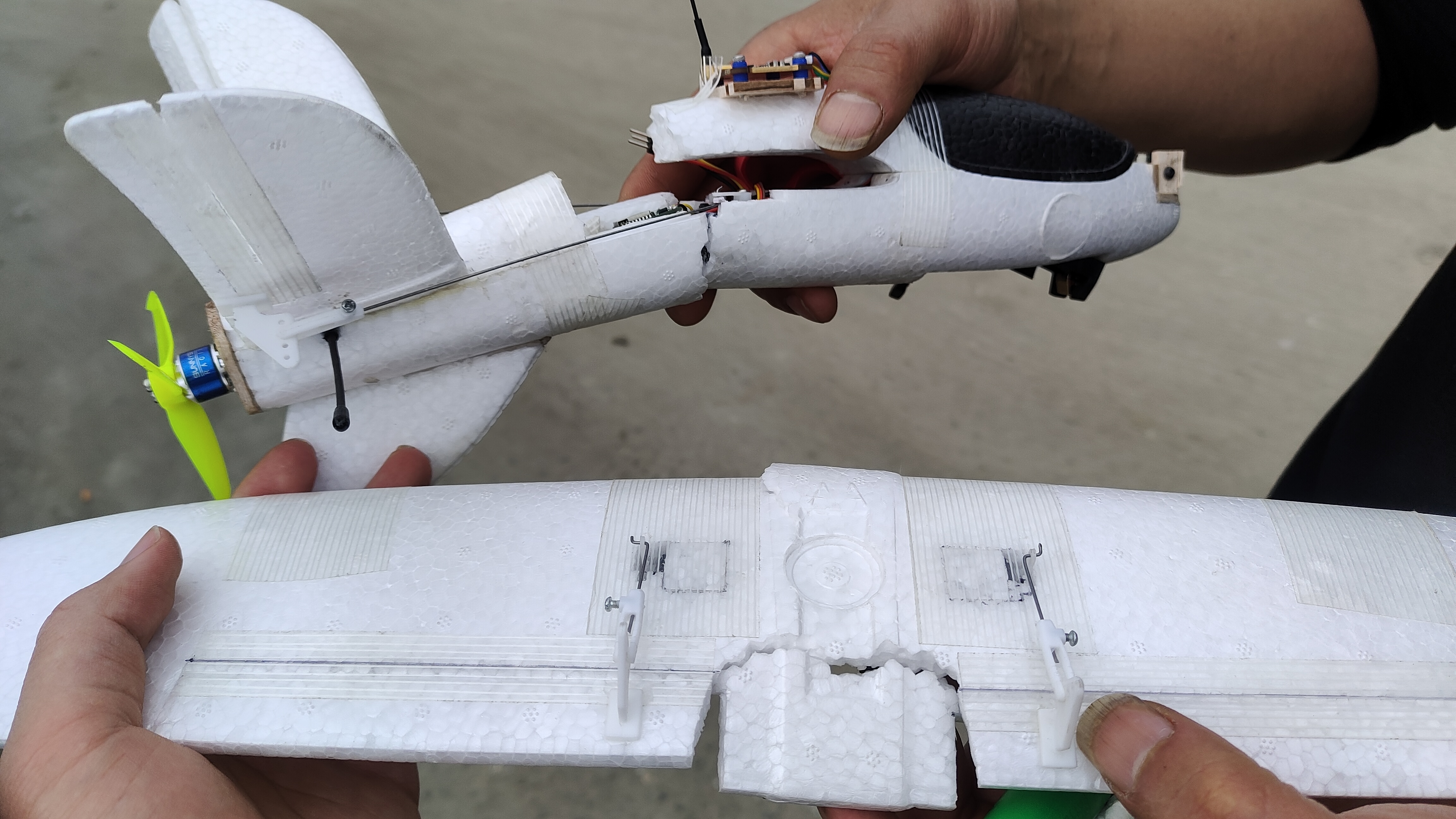 重心有点问题,过于靠前了,导致爬升率低最后炸鸡,图里这架重心在主机翼前缘往后2公分的位置,个人感觉正确重心应该在翼弦1/2处