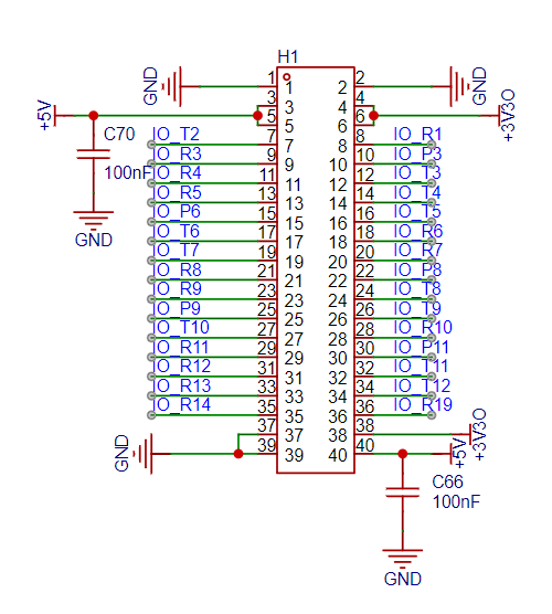 fpga核心引脚未全部引出、PCB上留有40pin排针输出:
