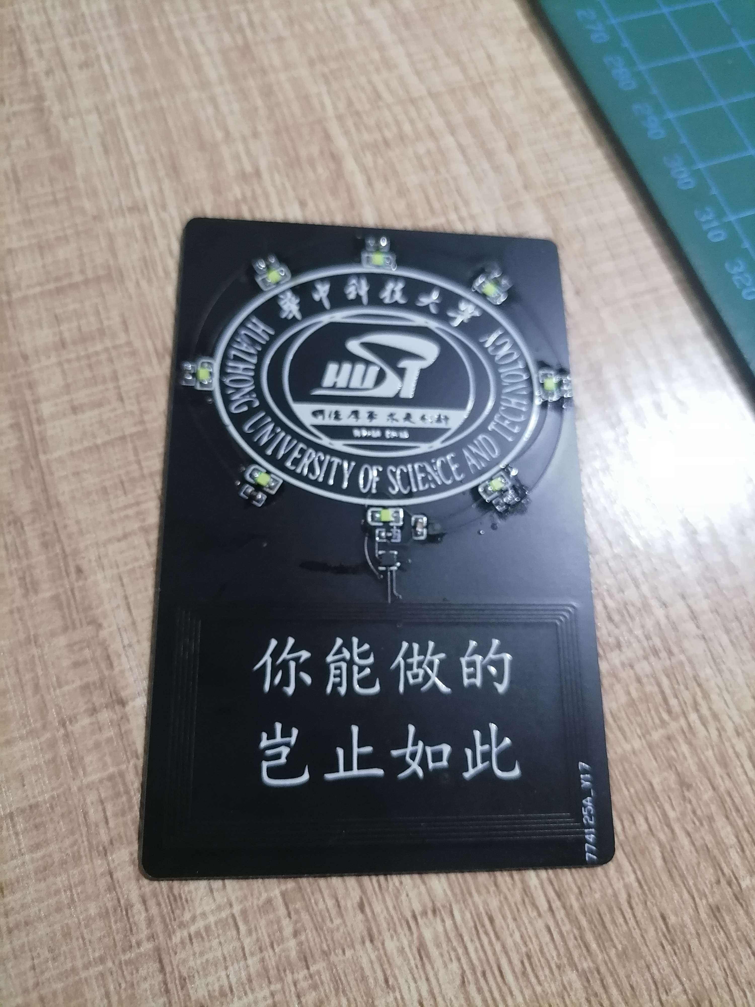 这个项目正面是华科的校徽,周围设计了8个蓝光led灯,背面是校园地图