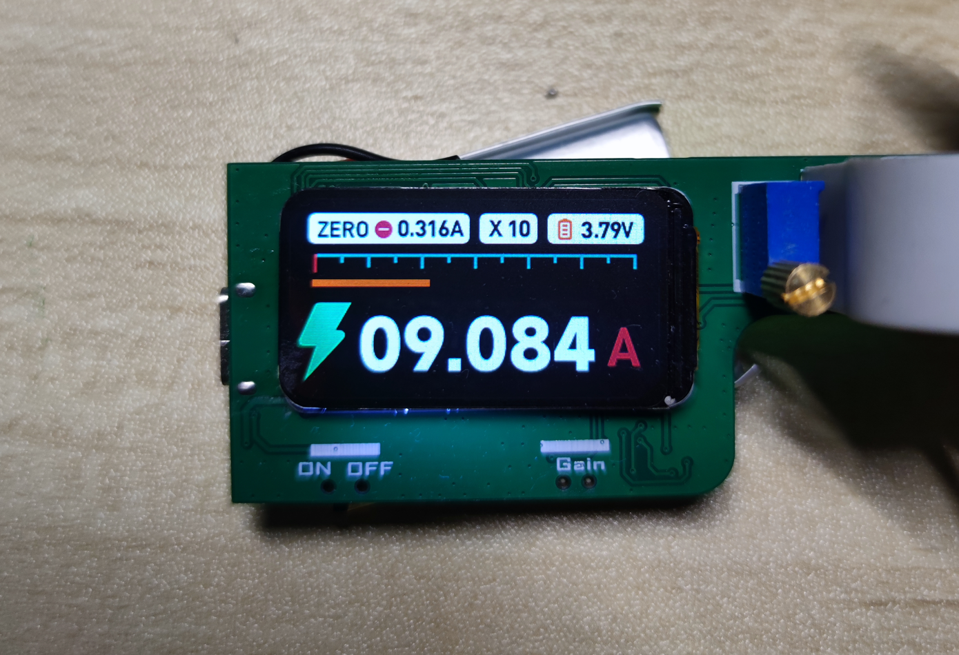 x10增益,9A电流测试