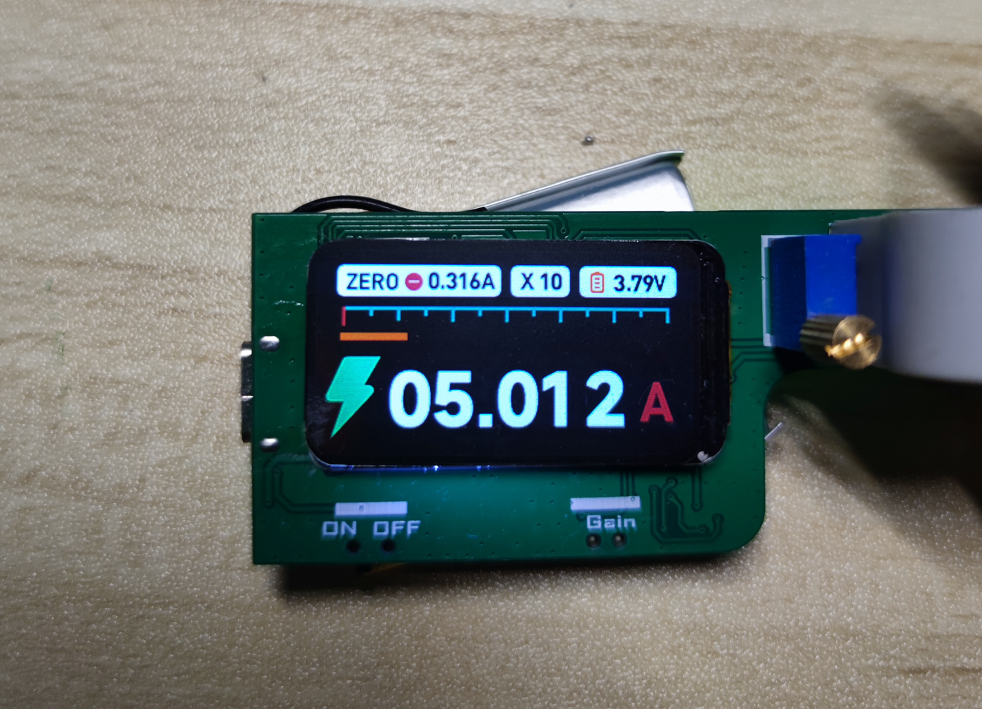 - 长按Gain按键对零点电流进行软件调零