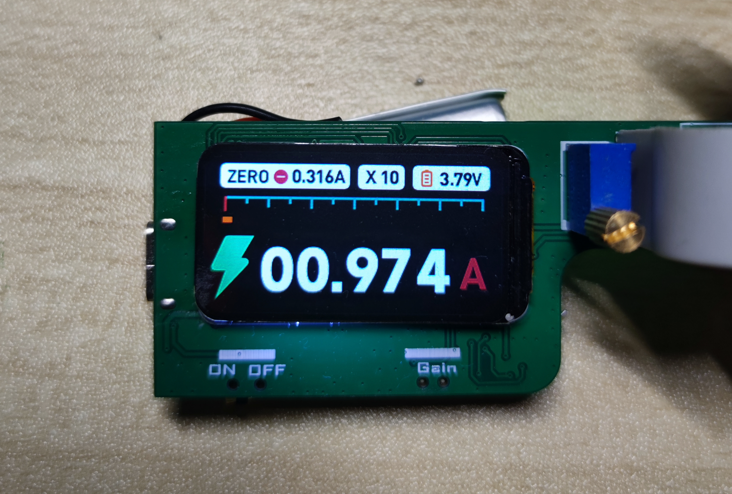 - 有2个电流档位,分为是0.1V/A和1V/A,短按Gain按键进行切换