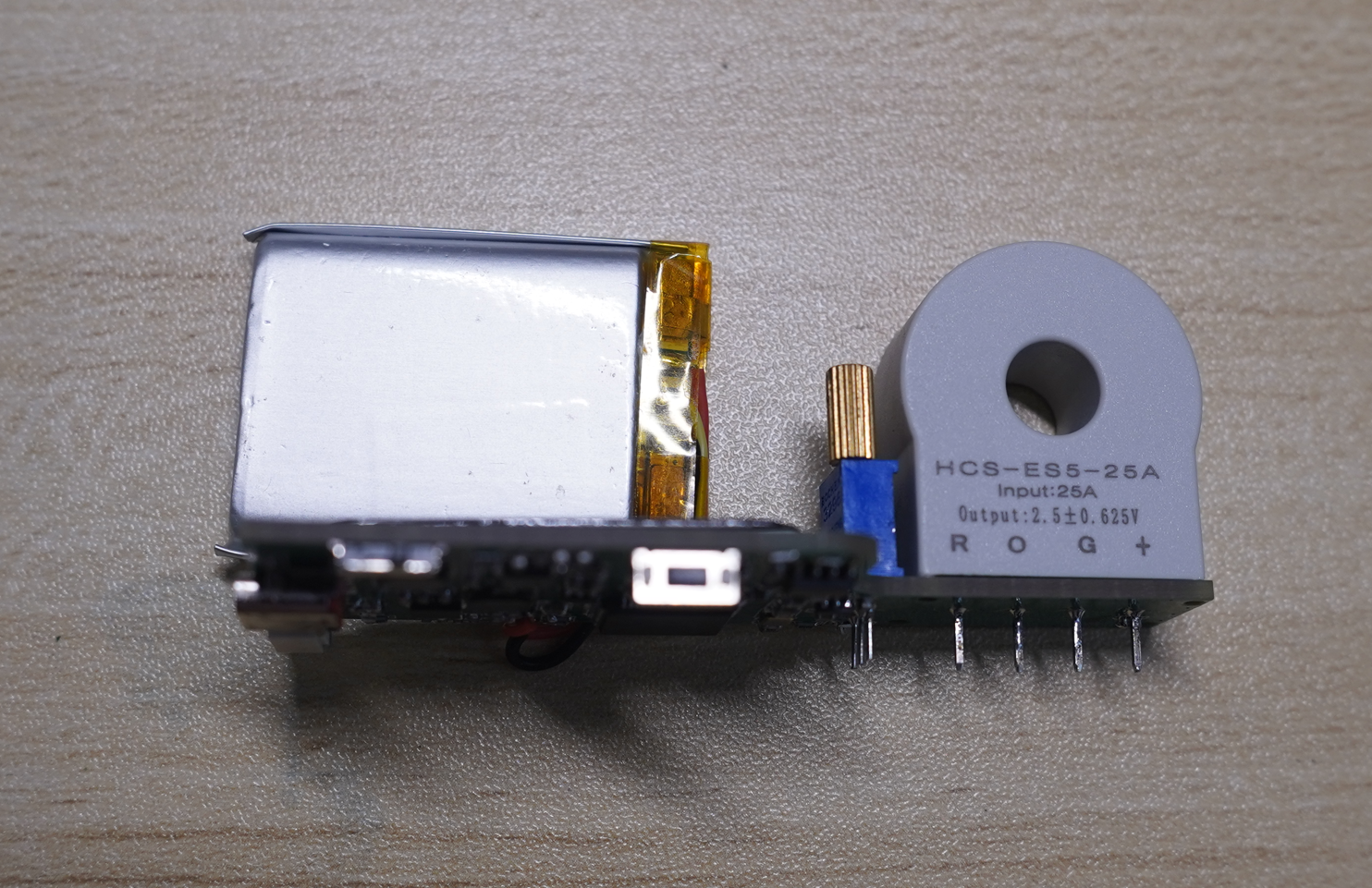 基于HCS-ES5 闭环霍尔电流传感器和运算放大器搭建的电流传感器模块,便携可移动,带电池