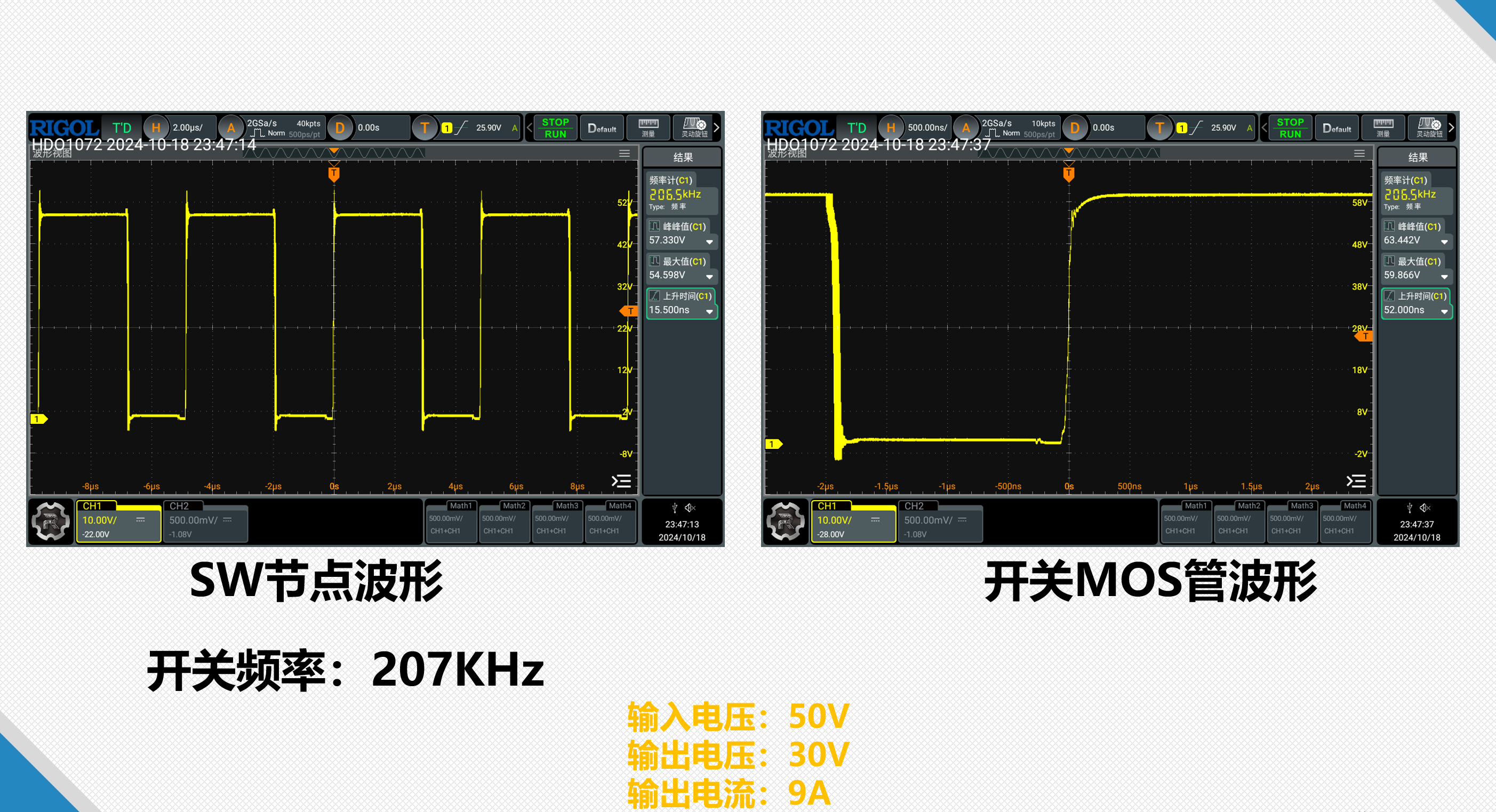 输出电压30V,输出电流9A,功率270W,开关节点依然有明显振铃