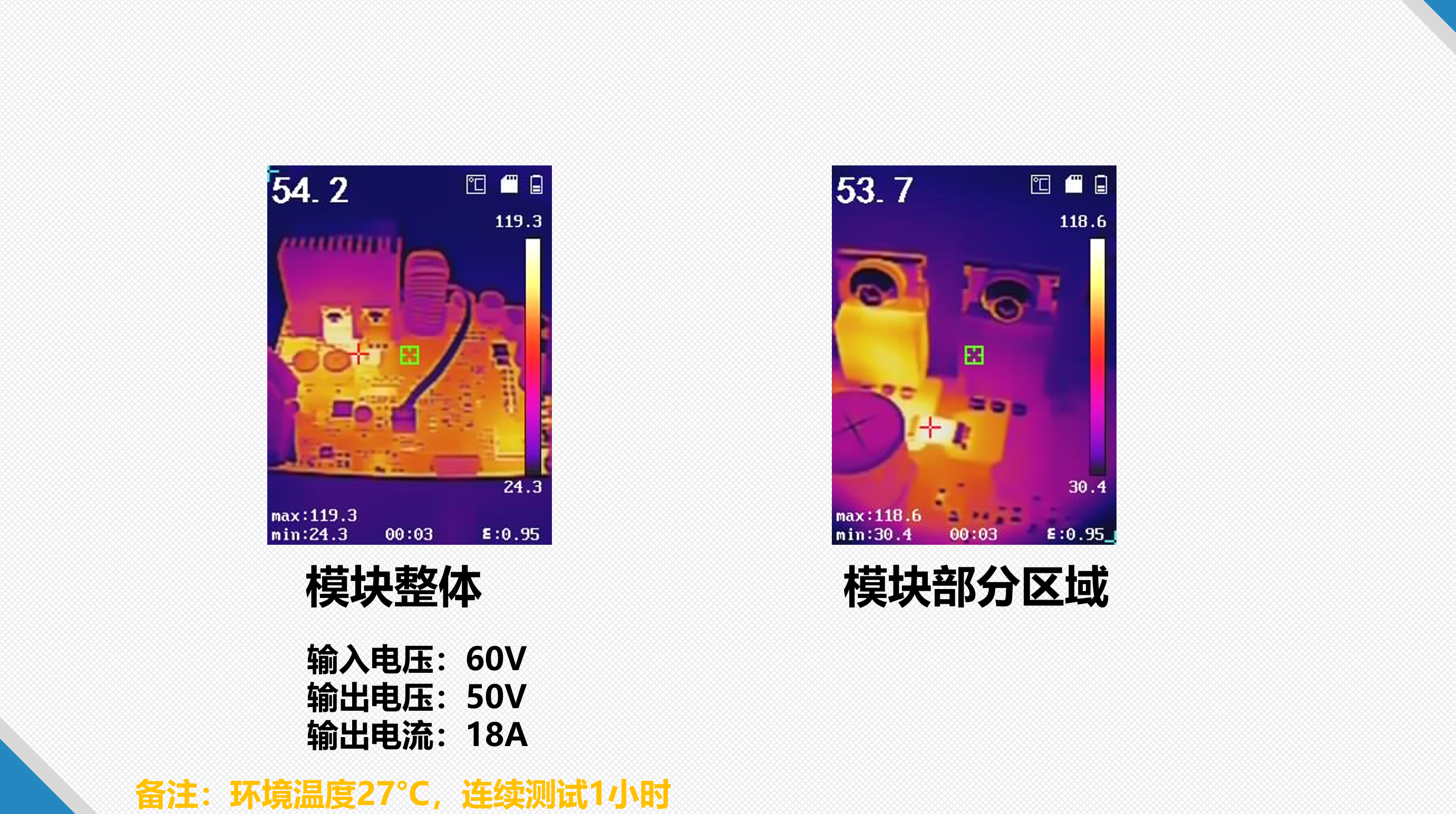 且有风扇的辅助散热,MOS管温度低于60°C,长时间运行散热也满足要求