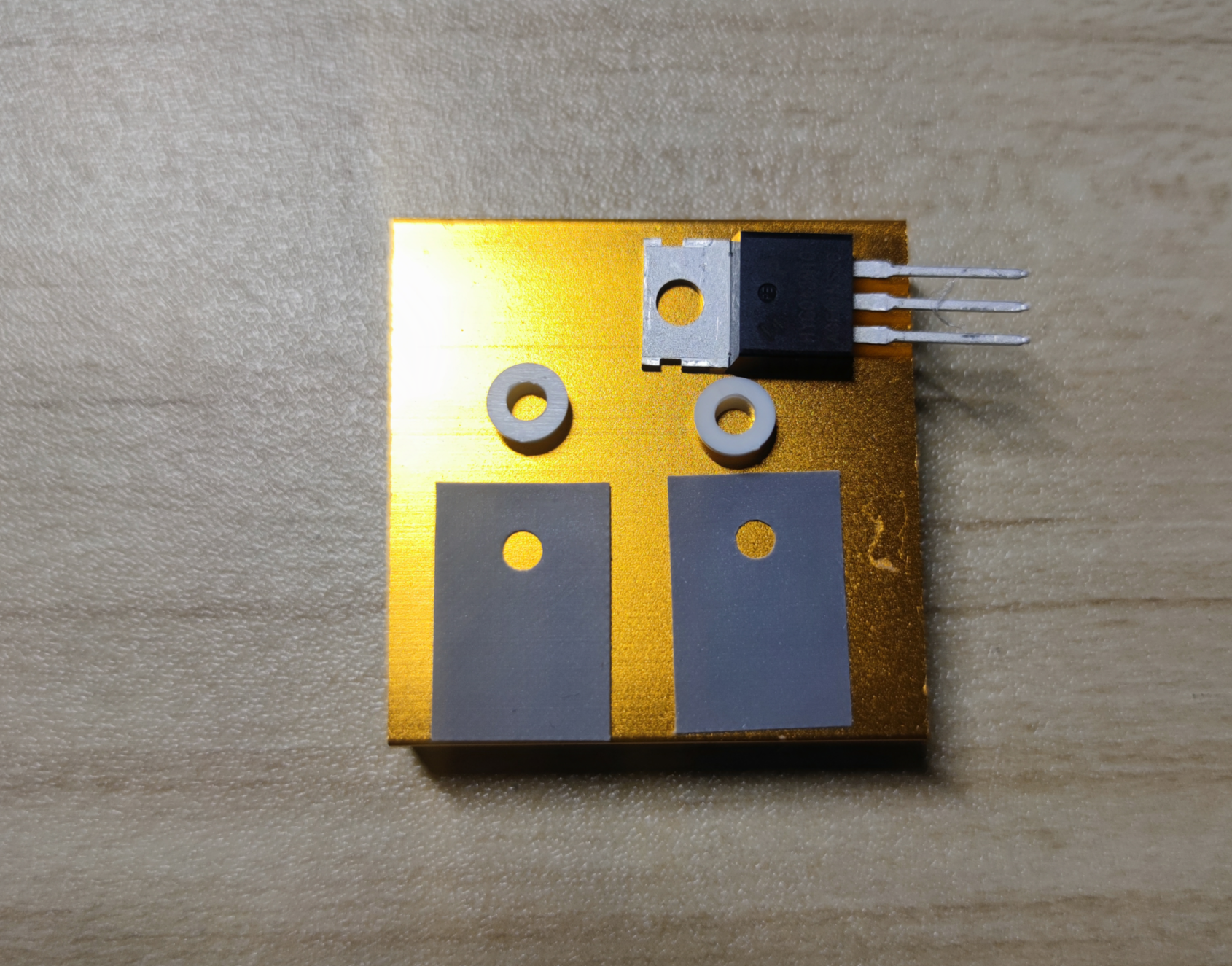 关于散热片的安装,虽然这种金色散热片表面处理有阳极工艺,但最好还是要使用垫片进行隔开,防止2个MOS管D极短路