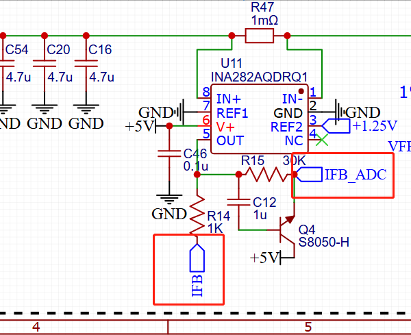 原理图存在有错误,IFB和IFB_ADC网络搞错了,现IFB网络位置应当是IFB_ADC网络,同理IFB_ADC网络位置应当是IFB网络