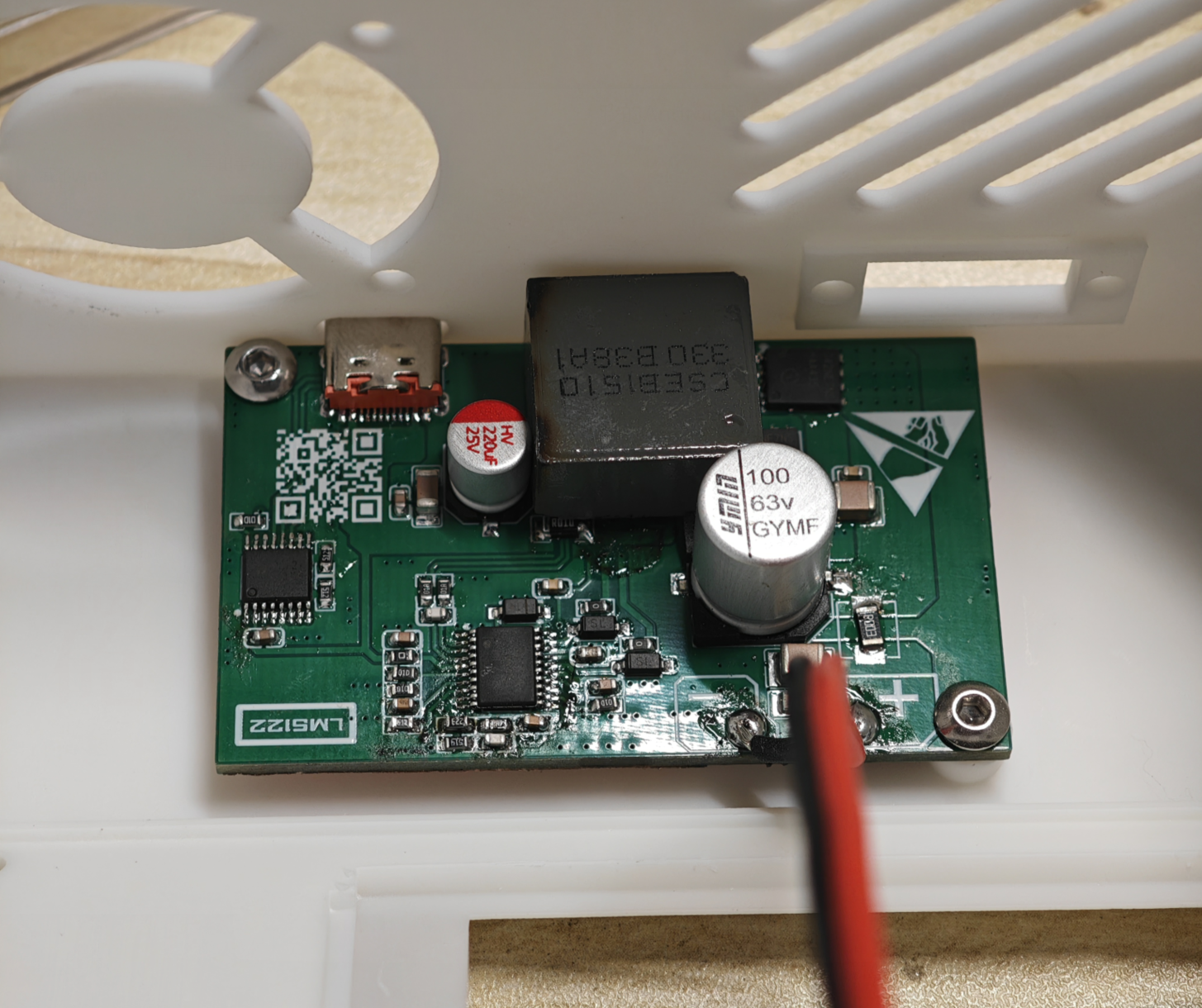 为了兼容PD协议输入,不打算改动电源板,制作了一个外置的升压模块,从20V升至60V,将小体积升压模块装在新打印的外壳上