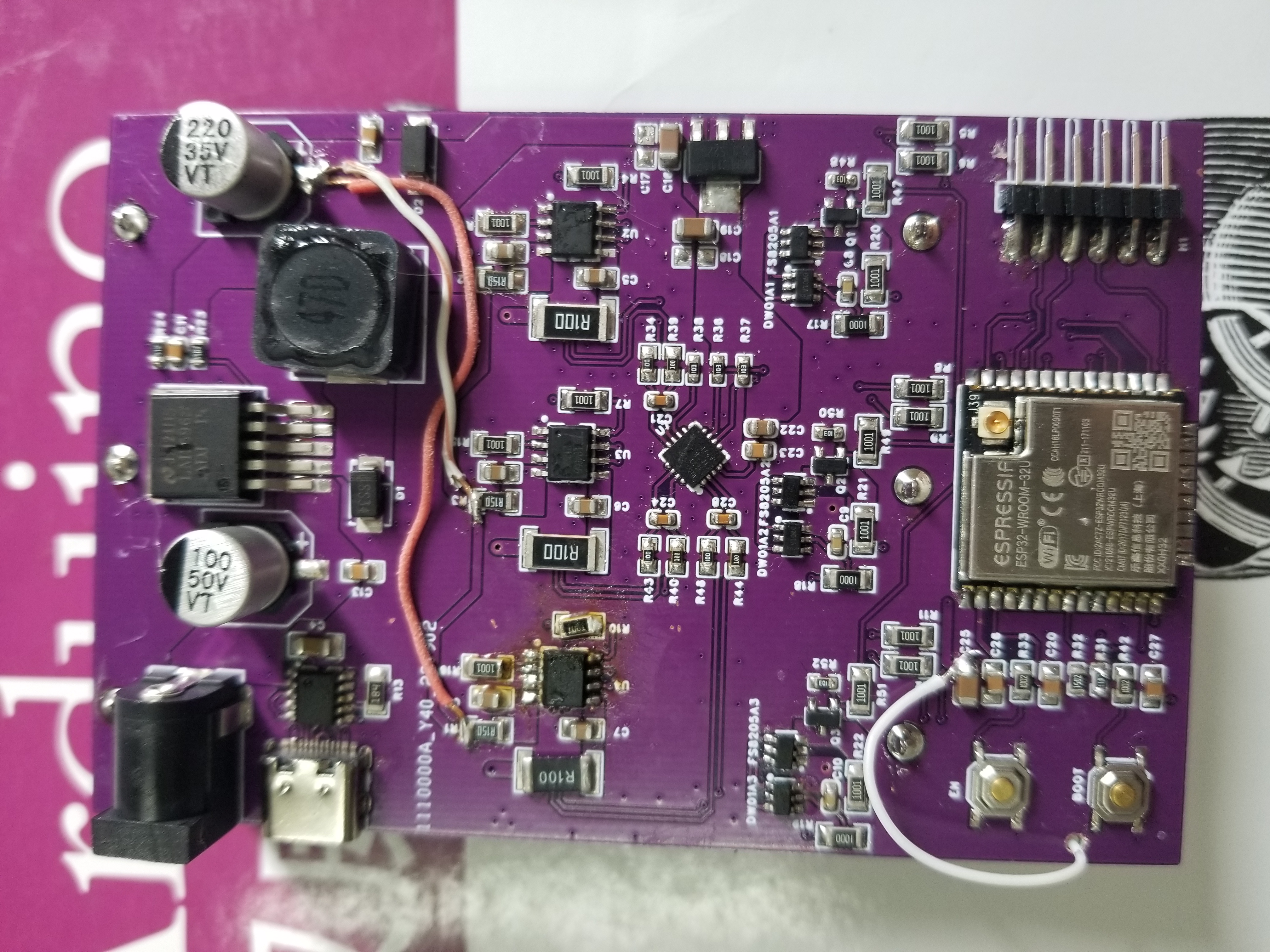 系统上电后,ESP32检测输入电压,如输入电压小于6V,则拉低NMOS栅极电压,关闭TP4056的充电功能。此时红灯和黄灯同时闪烁。