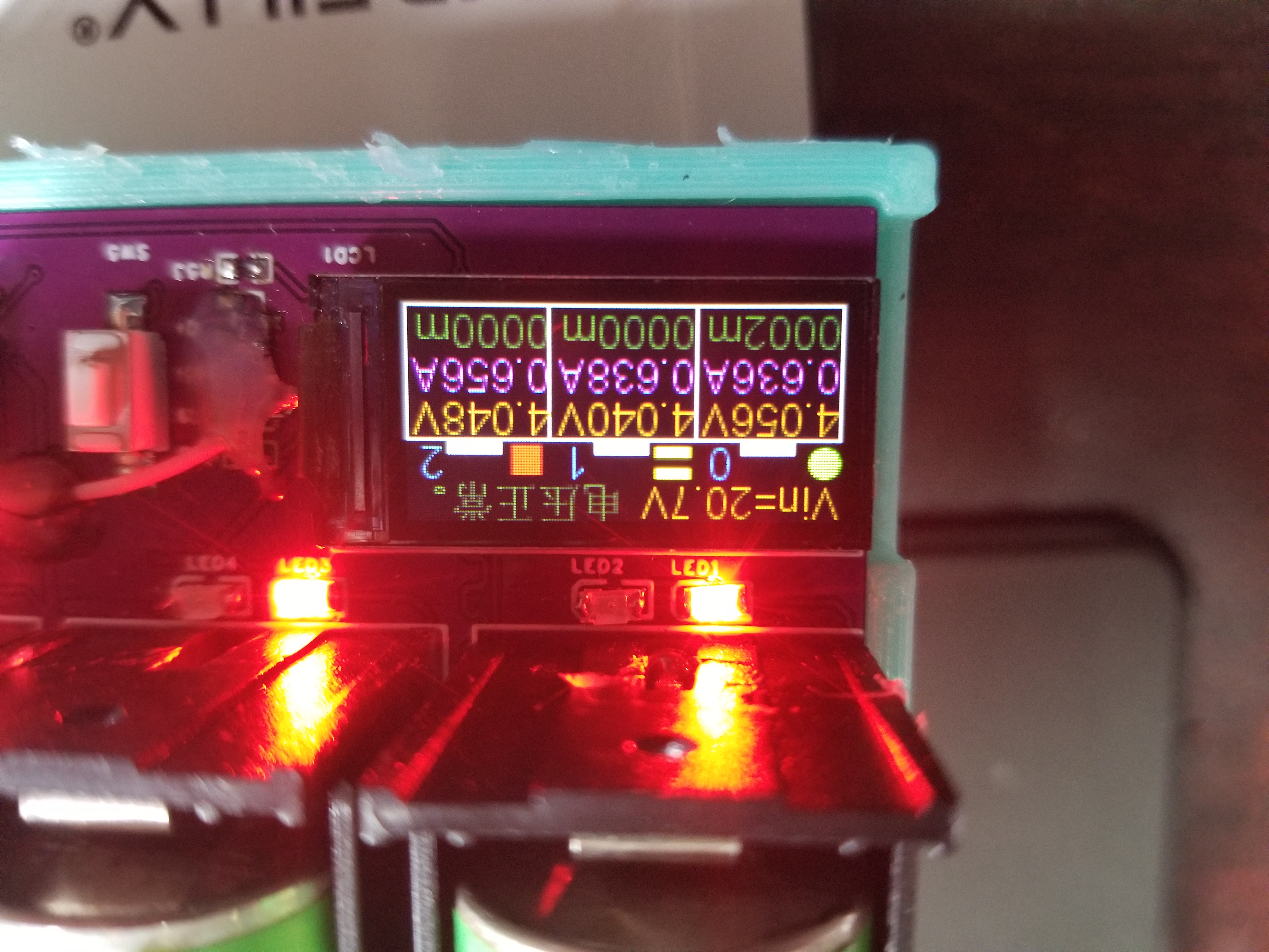 充电时,INA3221检测各个电池的充电电压和电流,并在TFT上显示。
