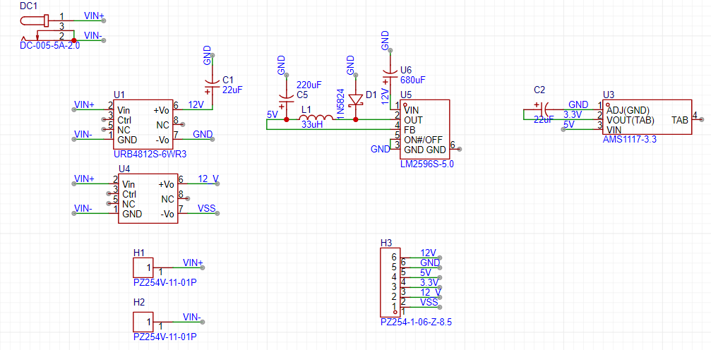 辅助电源模块(带一路隔离输出12V给驱动电路供电),接光伏输入,输出12V,5V,3.3V给相关芯片供电