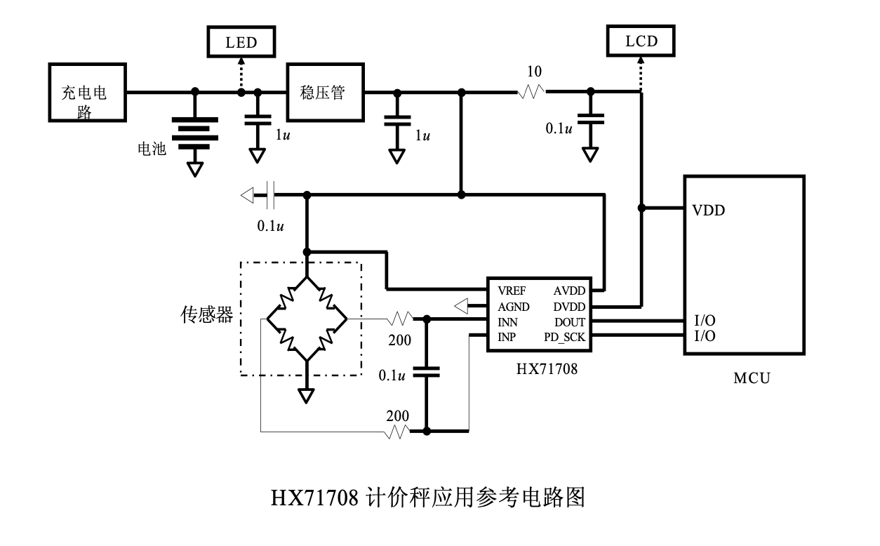 HX71708 采用了海芯科技集成电路专利技术,是一款专为高精度电子秤而设计的 24 位 A/D 转换器芯片。与同类型其它芯片相比,该芯片具有集成度高、响应速度快,简单来说是HX711的升级版。