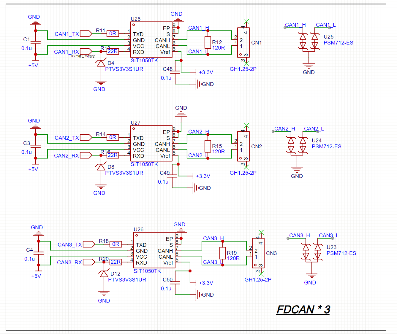 主控板作为机器人控制的核心(小脑), 在RoboMaster比赛中扮演重要角色; 本队伍在24赛季的哨兵舵轮底盘控制上使用3块C板的”豪华“组合(云台1块,底盘2块),可以说非常浪费资源,所以本人就在着手研发具有3路CAN的主控。