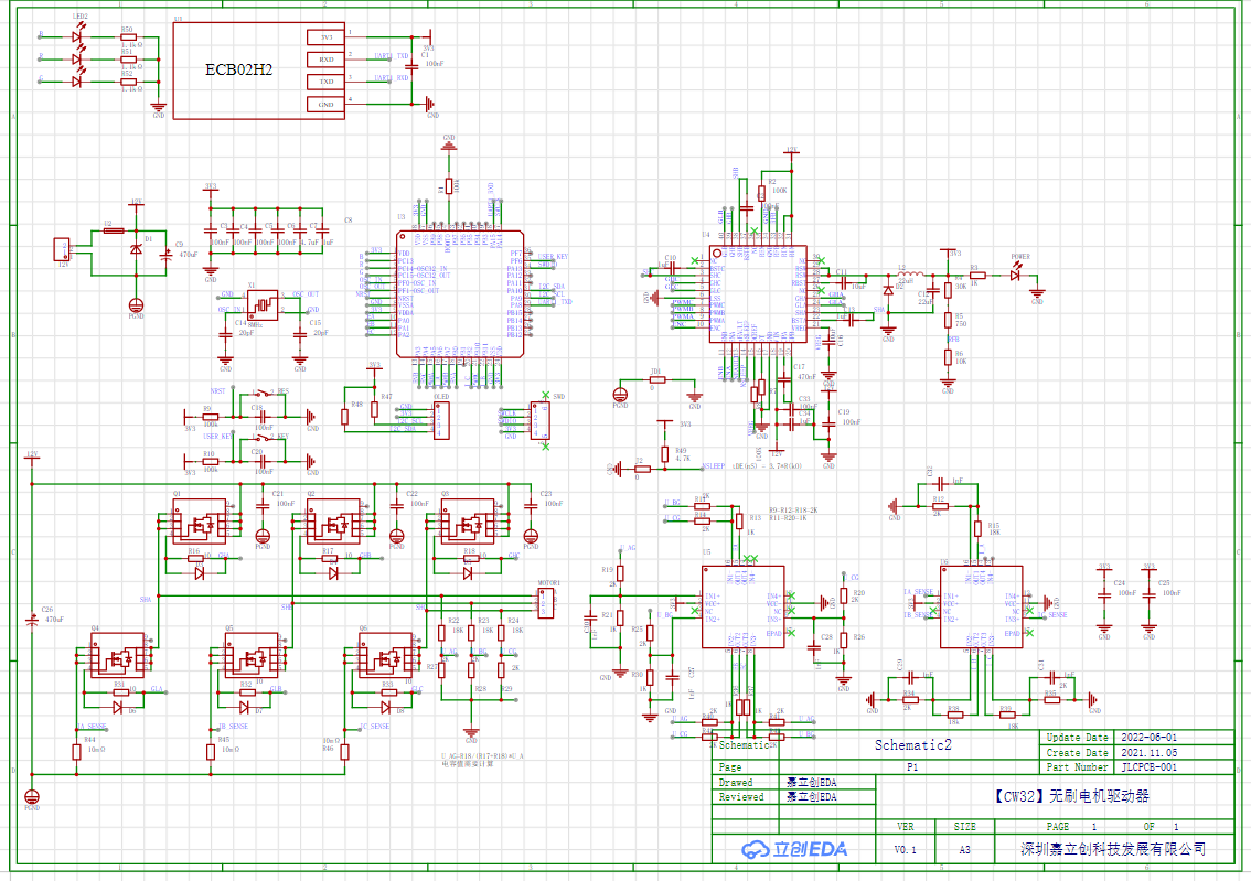 总体设计方案分为CW32最小系统、MP6534外围电路设计、MOS管组成的三个半桥逆变器、蓝牙串口模块、OLED显示模块。设计驱动电流为8A。
