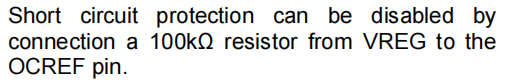 短路电流我没有使用此功能,按照手册接100K电阻从VREG脚到OCREF脚。